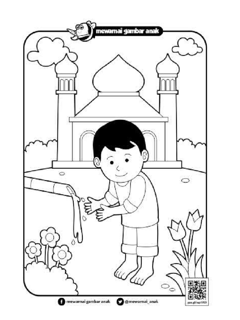 Gambar Mewarnai Islami Anak Berwudhu - Gambar Mewarnai Gambar